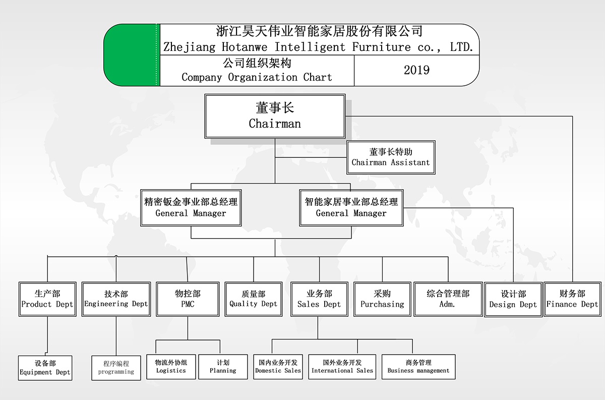 浙江昊天偉業(yè)智能家居股份有限公司(前身浙江昊天偉業(yè)家具有限公司,成立時(shí)間:2005年9月30日),是一家集開發(fā)、設(shè)計(jì)、生產(chǎn)、銷售及服務(wù)于一體的專業(yè)化現(xiàn)代家具企業(yè),公司主營生產(chǎn)圖書館家具、辦公家具、酒店家具、實(shí)驗(yàn)室家具、鋼制家具、椅子和沙發(fā)等系列產(chǎn)品。公司發(fā)展至今,先后獲得“中國辦公家具產(chǎn)業(yè)基地重點(diǎn)骨干企業(yè)”、“中國家具協(xié)會第五屆理事單位”、“中國綠色環(huán)保產(chǎn)品”、“浙江市場消費(fèi)者最滿意品牌”等諸多稱號和榮譽(yù)。公司先后通過多項(xiàng)專利(實(shí)用新型專利十多項(xiàng)、外觀設(shè)計(jì)專利十多項(xiàng) ) 、ISO9001:2000國際質(zhì)量體系認(rèn)證、ISO14001:2004環(huán)境管理體系認(rèn)證、職業(yè)健康安全管理體系認(rèn)證、中國環(huán)保產(chǎn)品認(rèn)證(CQC)、中國環(huán)境標(biāo)志產(chǎn)品認(rèn)證(十環(huán))、環(huán)境標(biāo)志產(chǎn)品政府采購清單、企業(yè)創(chuàng)新獎(jiǎng)、股改先進(jìn)企業(yè)、浙江股權(quán)交易中心成長板掛牌企業(yè)(企業(yè)代碼803300)、省先進(jìn)企業(yè)等稱號。無論從設(shè)計(jì)選材、下料、加工到成品包裝等各個(gè)環(huán)節(jié),都做到細(xì)致考究、別具匠心。公道的價(jià)格、無微不至的售前、售中、售后服務(wù),贏得了廣大客戶的信賴。